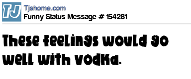- # 79131 Vodka is the drink of feelings. Whiskey is the drink of revenge against feelings. I'll take one of each, please.