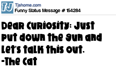 - # 69972 Dear Curiosity, Please just put the gun down and lets talk this out. ~ Sincerely, Cat