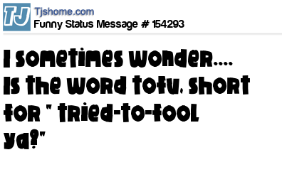 X I sometimes wonder.... Is the word tofu, short for " tried-to-fool ya?"