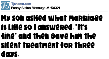 X says My son asked what marriage is like so I answered, "It's fine" and then gave him the silent treatment for three days.