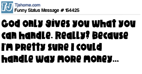 X God only gives you what you can handle. Really? Because I'm pretty sure I could handle way more money...