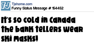 X says It's so cold in Canada the bank tellers wear ski masks!