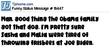 X Man, good thing the Obama family got that dog. I'm pretty sure Sasha and Malia were tired of throwing frisbees at Joe Biden.