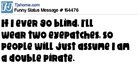 X If I ever go blind, I'll wear two eyepatches, so people will just assume I am a double pirate.