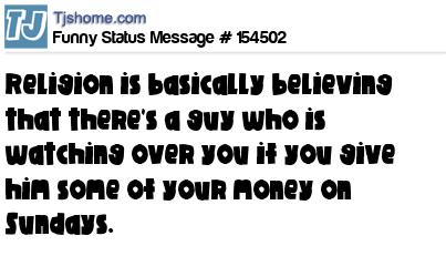X says religion is basically believing that there's a guy who is watching over you if you give him some of your money on Sundays.