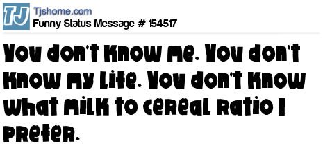 X says You don't know me. You don't know my life. You don't know what milk to cereal ratio I prefer.