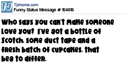 X says Who says you can't make someone love you? I've got a bottle of Scotch, some duct tape and a fresh batch of cupcakes, that beg to differ.
