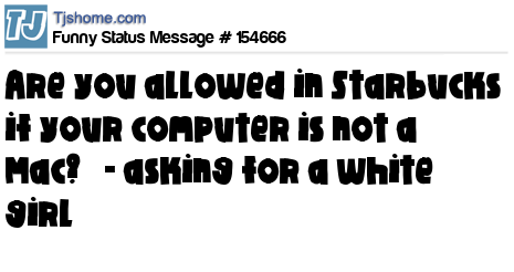 X says Are you allowed in Starbucks if your computer is not a Mac? - asking for a white girl