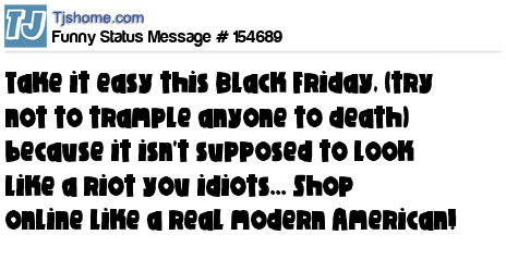 X  Take it easy this Black Friday, (try not to trample anyone to death) because it isn't supposed to look like a riot you idiots... Shop online like a real modern American!