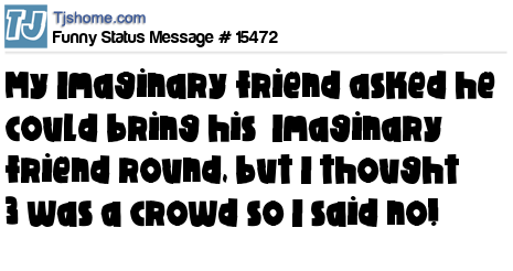 X My Imaginary friend asked he could bring his Imaginary friend round, but I thought 3 was a crowd so I said no!