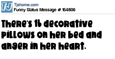 - # 154809 There's 16 decorative pillows on her bed and crazy in her head.