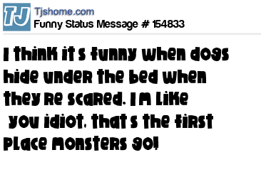 X says I think it’s funny when dogs hide under the bed when they’re scared. I’m like “you idiot, that’s the first place monsters go!”