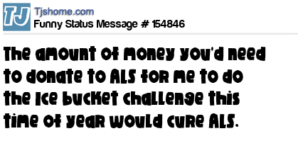 - # 154007 I haven't seen an Ice Bucket Challenge video in about a week. Did we cure ALS?