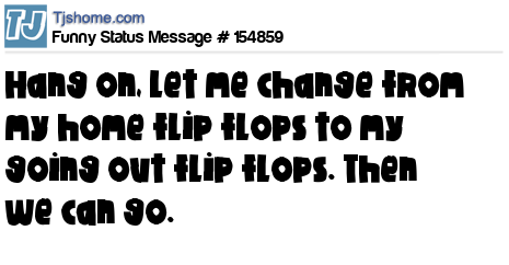 X says Hang on, let me change from my home flip flops to my going out flip flops. Then we can go.