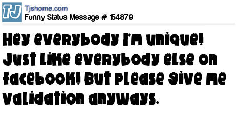 X says Hey everybody I'm unique! Just like everybody else on facebook! But please give me validation anyways.