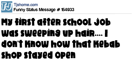 X says My first after school job was sweeping up hair.... I don't know how that kebab shop stayed Open