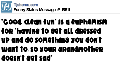 X says "Good, clean fun" is a euphemism for "having to get all dressed up and do something you don't want to, so your grandmother doesn't get sad"
