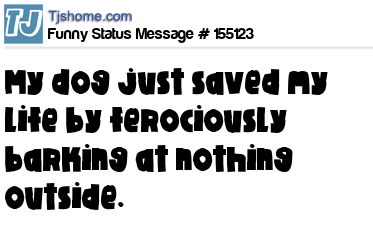 - # 155141 "My dog just saved my life by ferociously barking at" wrong people. :)