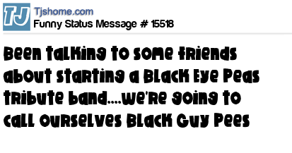 X has been talking to some friends about starting a Black Eye Peas tribute band....we're going to call ourselves Black Guy Pees