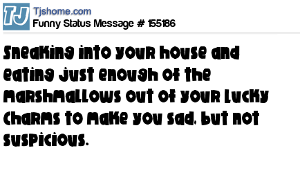 - # 161095 FYI,, I'm Sneaking into your house and eating just enough of the marshmallows out of your Lucky Charms to make you sad,,, but not suspicious.