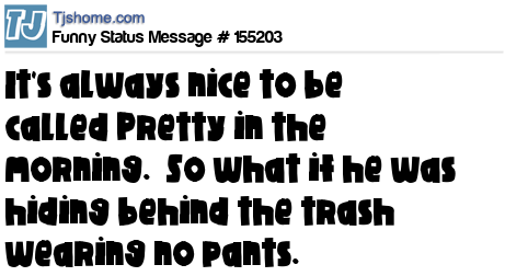 X says It's always nice to be called Pretty in the morning. So what if he was hiding behind the trash wearing no pants.