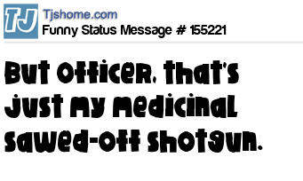 X says But Officer, that's just my medicinal sawed-off shotgun.