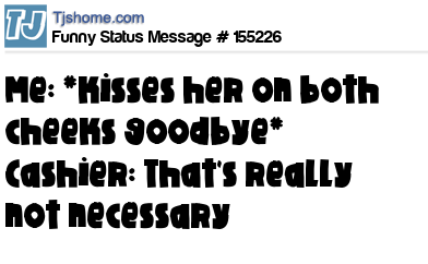 X says Me: *kisses her on both cheeks goodbye* Cashier: That's really not necessary