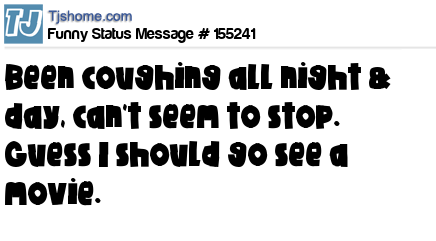 X says Been coughing all night & day, can't seem to stop. Guess I should go see a movie.
