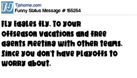 X says Fly Eagles fly. To your offseason vacations and free agents meeting with other teams. Since you don't have playoffs to worry about.