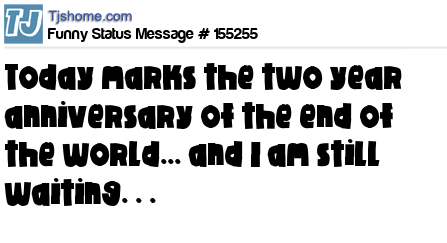 X says Today marks the two year anniversary of the end of the world... and I am still waiting. . .