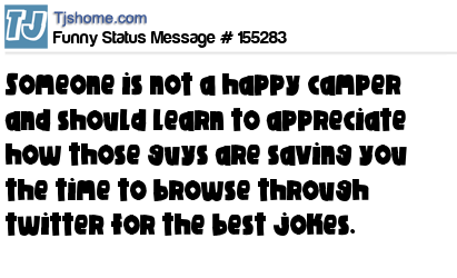 X says Someone is not a happy camper and should learn to appreciate how those guys are saving you the time to browse through twitter for the best jokes.