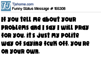 X says If you tell me about your problems and I say I will pray for you, it’s just my polite way of saying fcuk off, you’re on your own.