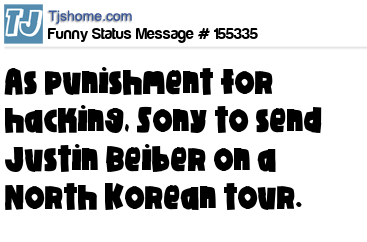 X says As punishment for hacking, Sony to send Justin Beiber on a North Korean tour.