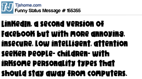 X LinkedIn, a second version of Facebook but with more annoying, insecure, low intelligent, attention seeker people- children- with irksome personality types that should stay away from computers.