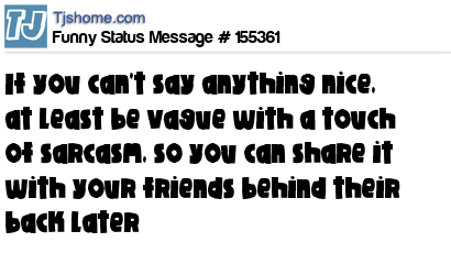 - # 41006 If you can't say anything nice, at least be vague with a touch of sarcasm, so you can share it with your friends behind their back later.