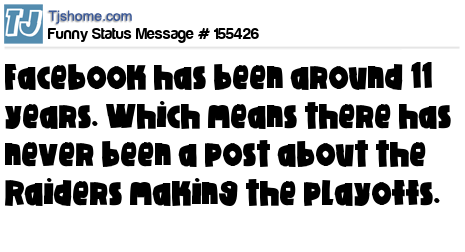 X says Facebook has been around 11 years. Which means there has never been a post about the Raiders making the playoffs.