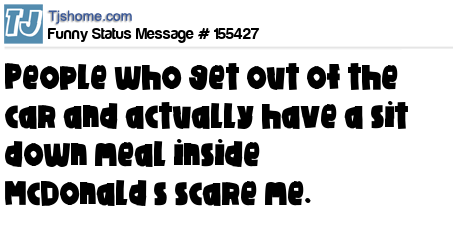 X says People who get out of the car and actually have a sit down meal inside McDonald’s scare me.