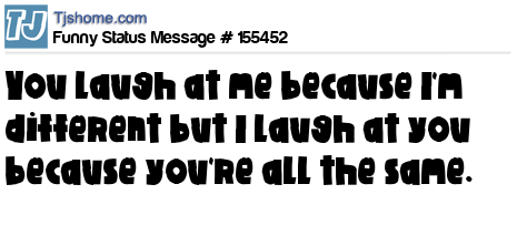 X says You laugh at me because I'm different but I laugh at you because you're all the same.
