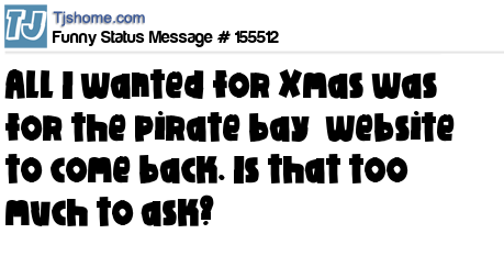 X says All I wanted for Xmas was for the pirate bay website to come back. Is that too much to ask?