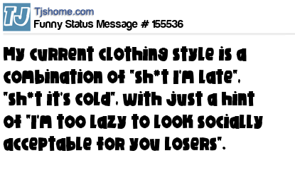 - # 163229 My clothing style today will be sh*t I'm running late, with accessories from the sh*t its cold collection, with a hint of I don't give a sh*t.