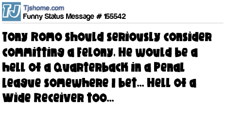 X says Tony Romo should seriously consider committing a Felony, He would be a hell of a Quarterback in a Penal League somewhere I bet... Hell of a Wide Receiver too...