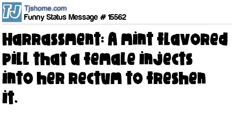 X Harrassment: A mint flavored pill that a female injects into her rectum to freshen it.