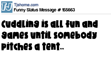 X says Cuddling is all fun and games until somebody pitches a tent..