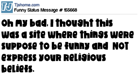 X says Oh my bad, I thought this was a site where things were suppose to be funny and NOT express your religious beliefs.