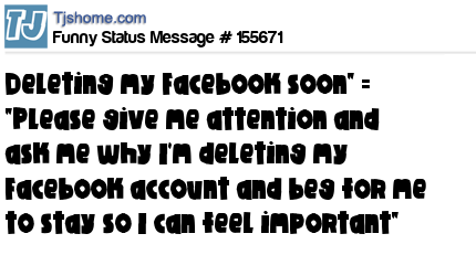 X Deleting my Facebook soon" = "Please give me attention and ask me why I'm deleting my Facebook account and beg for me to stay so I can feel important"