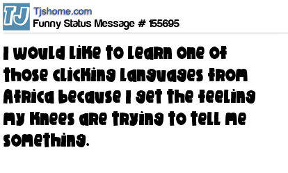 X says I would like to learn one of those clicking languages from Africa because I get the feeling my knees are trying to tell me something.