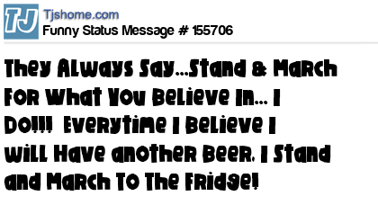 X says They Always Say...Stand & March For What You Believe In... I Do!!! Everytime I Believe I will Have another Beer, I Stand and March To The Fridge!
