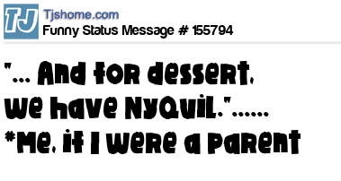 X says "... And for dessert, we have NyQuil."...... *Me, if I were a parent