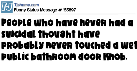 X People who have never had a suicidal thought have probably never touched a wet public bathroom door knob.