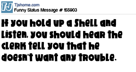 - # 154267 If you hold up a Shell and listen carefully, you can hear the cashier telling you he doesn't want any trouble.